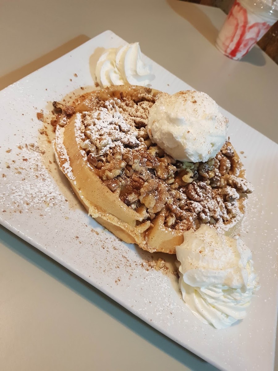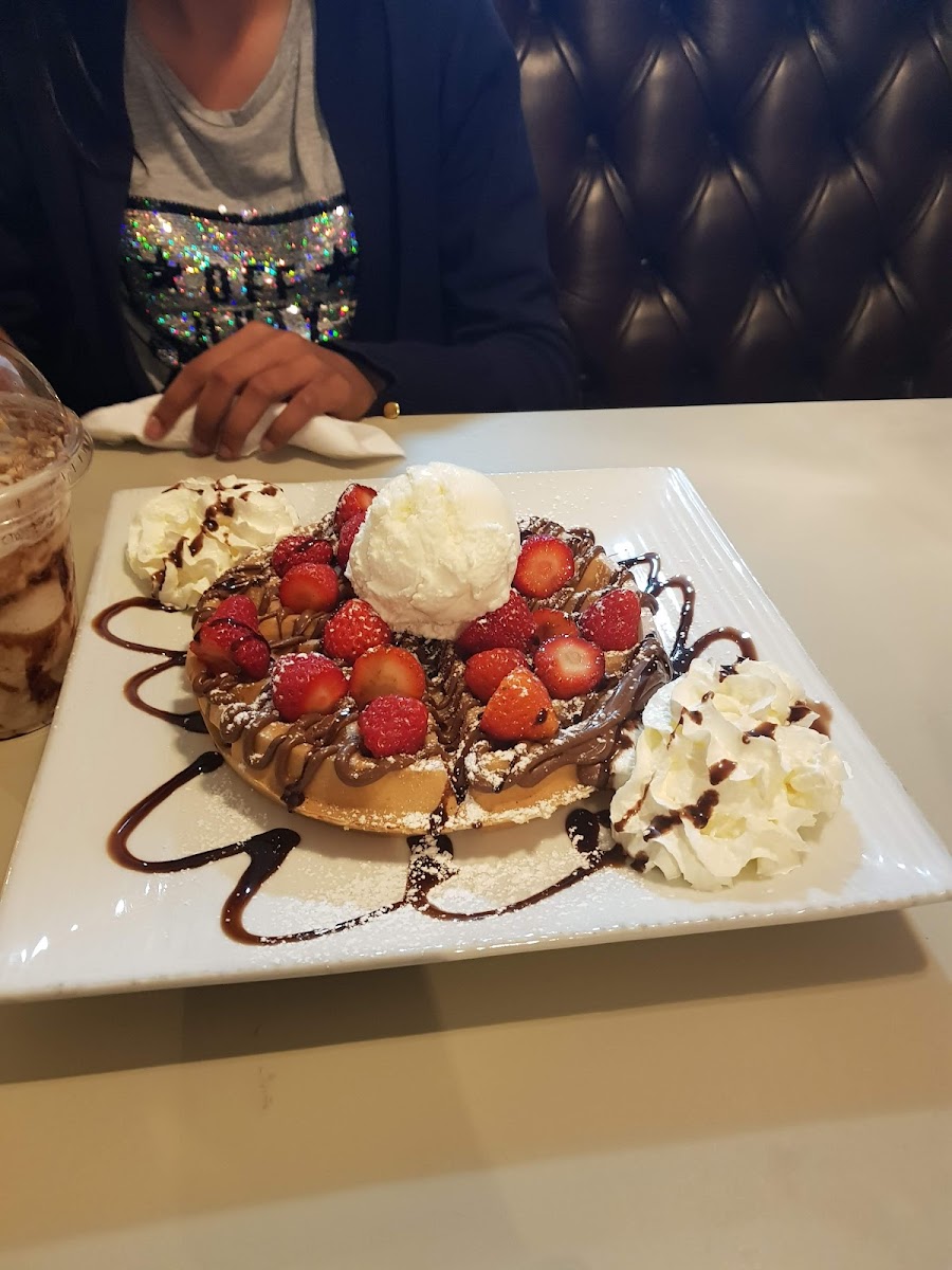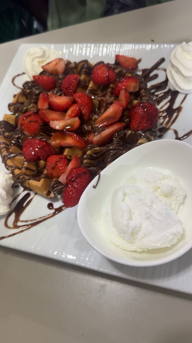 The menu rounds out a diverse assortment of indulgences — from classic English breakfasts to creative dessert combos like strawberry and Nutella waffles or sticky toffee lemon meringue. Ice cream selections are notable, with options including Swiss chocolate and fruit sorbets that stand out for both quality and generous servings. It’s clear that the kitchen takes care to offer something for various tastes, whether you want a rich brownie fudge cake or a refreshing mint tea.